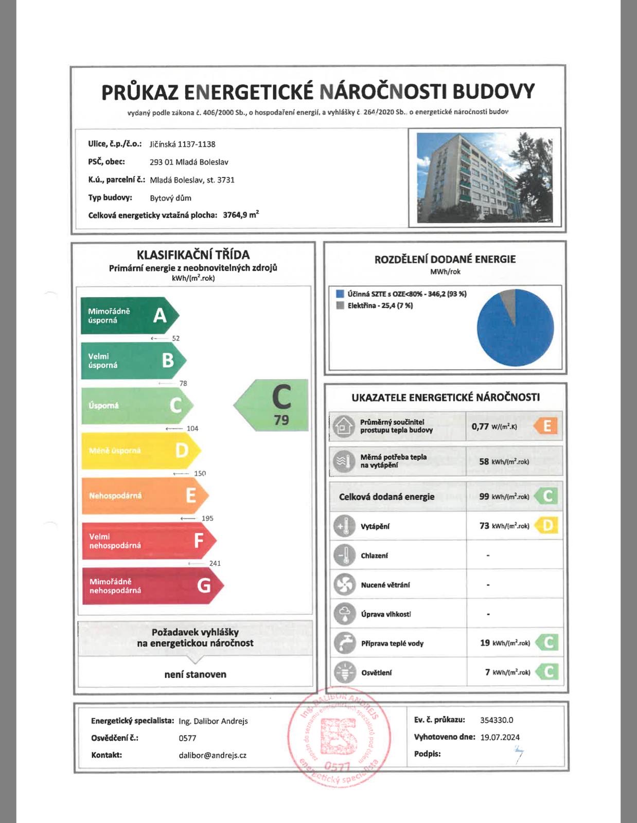 | Ukazatel ENB | 79 kWh/m2 za rok |